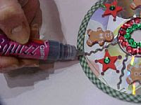 Pintar pequenas bolinhas nas extremidades das estrelas com a tinta Squizz com Glitter vermelho.